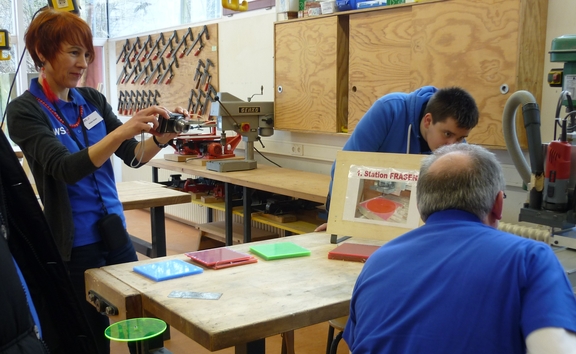 Bunte Fahnen und die »rasenden Triker« aus der Ganztagesschule begrüßten die Gäste schon im Schulhof und luden z.B. in den Schülertreff mit den Aktivräumen ein. Dort präsentierte Sozialpädagogin Ellen Efinger mit ihrem Team das Konzept des pädagogischen Mittagsbandes während ihr Kollege Frank Nebel den Schülern auf der zwischen den Bäumen gespannten Slack-Line die Erfahrung ermöglichte, Neues zu wagen und dabei gut abgesichert zu sein. In der Küche warteten die Englisch-Lehrkräfte mit einer köstlichen »fruit bar«