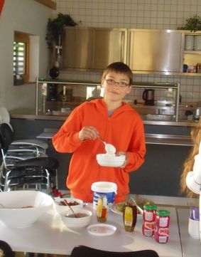 - Schülerfrühstück: Anleitung und Durchführung eines gemeinschaftlichen und gesunden Starts in den Tag in Form eines Schulfrühstücks, das einmal wöchentlich unter Mithilfe von Jugendlichen angeboten wird.