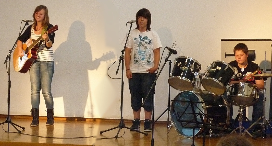 | Die Schulband musste ohne die Leitung Herrn Baslers auskommen, brachte aber in einer Notbesetzung »Knocking on heaven's door«.