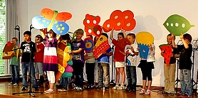 | Die Klasse 2a führte unter Leitung von Frau Göppert »The very hungry caterpillar« vor.