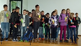 Ganz zum Schluss nahm EDe bei allen eine Prüfung ab, die sie nochmal mit allen Themen des Morgens in Berührung brachte. Am Ende des Morgens waren alle Kinder der vierten Klassen neuausgebildete und hochmotivierte Juniorenergiedetektive mit Zertifikat.