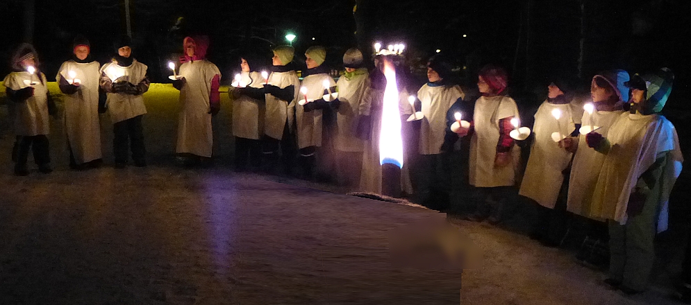 Fackeln die mit einem Kerzenkranz geschmückte Lichtträgerin.