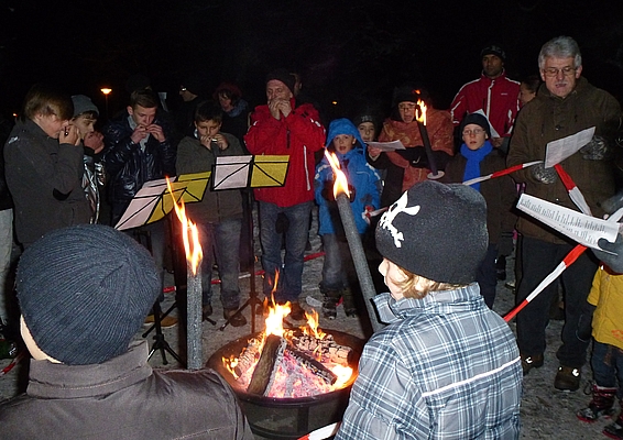 an. Aus vielen Kehlen schallten Winter- und Weihnachtslieder in die kalte Nacht.