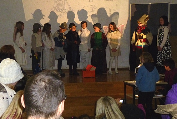 Eine moderne englische Weihnachtsgeschichte der Klassen 4a und 4b mit Frau Göppert beschloss den Rundgang im Musikpavillon.