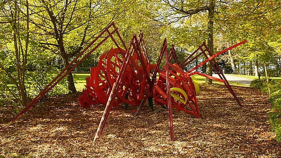 Die zweite Ameise ist ebenfalls linear geprägt. Es ist eine rote Ameise aus Holz (3m, 4m, 6m), welche gut sichtbar auf dem Schulgelände der Konrad-Witz-Schule platziert wurde.