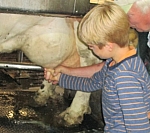 am 19.06.2015 den Hirschweidenhof in Trossingen. In sorgsamer und aufwändiger Vorarbeit erlebten die Kinder mit der Bäuerin Frau Messner einen Vormittag im Leben eines Landwirts. Im Milchviehbetrieb gab es natürlich junge Kälbchen, die neugierig alles angeknabbert haben, was ihnen vor die Schnauze kam. Die Mutterkühe dagegen wurden mithilfe zahlreicher Schubkarrenfuhren mit Heu und Kuhmüsli verwöhnt. Beim Melken konnten die Schüler den Kühen noch näher kommen. Den Abschluss auf dem Bauernhof bildete eine Milchsortenverköstigung.