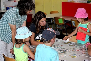 Hierbei konnten sich die rund 20 Kinder einerseits gegenseitig kennenlernen sowie andererseits an verschiedenen Stationen ihre ersten Erfahrungen mit schulischem Wissen sammeln. Neben Malen und Buchstabenkarten legen waren unter anderem auch sportliche Aktivitäten angesagt.