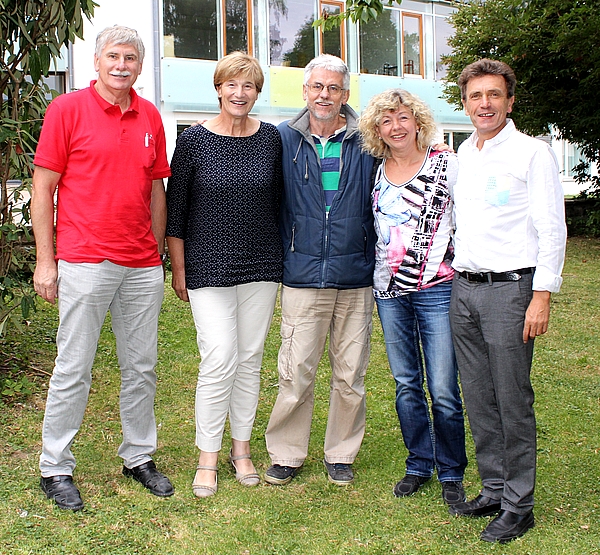 Das Foto (kws) zeigt von links die Jubilare Ekkehard Riedmüller, Martha Kipp, Hans-Jürgen Ramm und Gabi Fuchs-Eichin mit Rektor Willy Schmidt