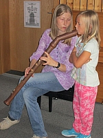 Ihre selbstgesponnene Schafwolle durften die Kinder dann auch mit nach Hause nehmen. Betreut wurden sie von Frau Kraftschik und Frau Schmiederer.