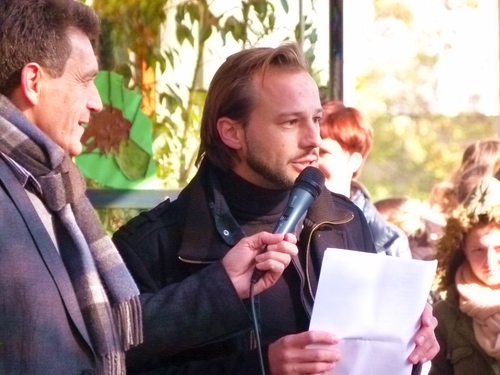 Lichtern und Gesang zu den Stationen im Park. In der Pausenhalle oben und in der Mensa gibt es Punsch und