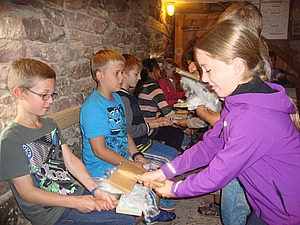 Nach einem anstrengenden, aber auch schönen Fußmarsch kamen die Schüler mit ihren Lehrkräften im Salinenmuseum an. Dort wurden sie von den Museumspädagoginnen und dem Salinentiger freundlich in Empfang genommen. Bei einer interessanten Führung erfuhren sie viel über die Salzgewinnung in Rottweil, z.B. anhand der Pumpen, die früher das salzhaltige Wasser nach oben befördert haben. Zum Abschluss fertigten die Kinder Kunstwerke aus Salzteig an.