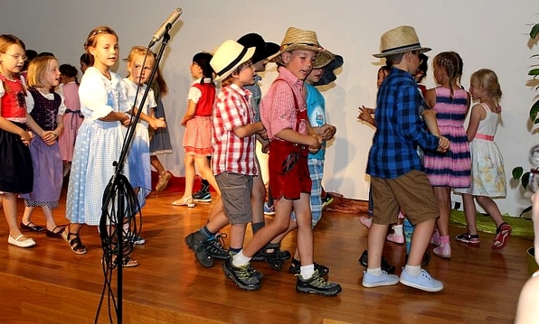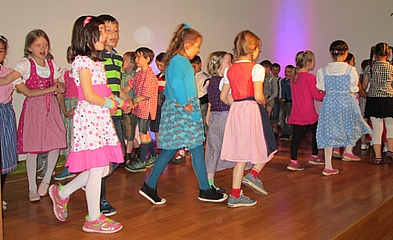 Mit einem flotten Schuhplattler eröffneten die beiden ersten Klassen die inzwischen schon zur Tradition gewordene Veranstaltung »KWS-on-stage«.
