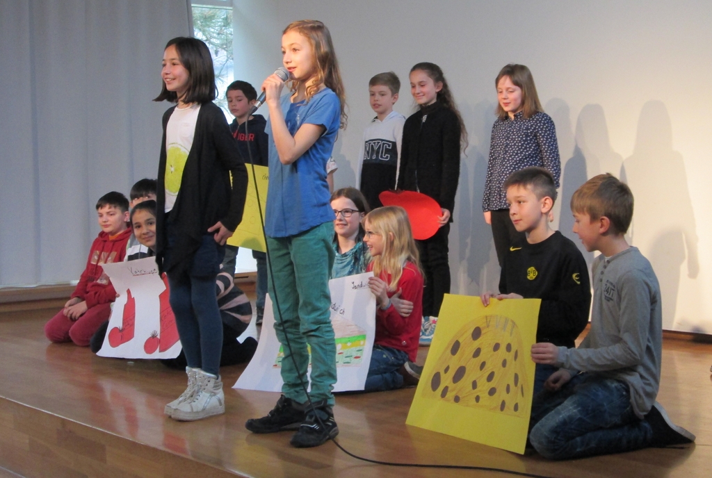 Male im Schuljahr Ergebnisse aus ihrem Unterricht. So sind regelmäßig musikalische Auftritte, Mini-Theateraufführungen, Lieder, Gedichte, Tänze, Sketche, auch kurze Vorträge auf dem Programm. Die Kinder üben sich außerdem im Präsentieren vor der gesamten Grundschulversammlung. »Show & Tell« dient damit erfolgreich zur Stärkung der musisch-kreativen, personalen und sozialen Kompetenzen. Eltern und Gäste sind immer eingeladen und freuen sich mit ihren Kindern.