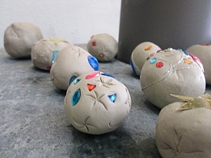 Aus Ton wurden Wunschkugeln angefertigt, die die kleinen, besonderen Dinge und die wichtigsten Wünsche der Kinder enthielten. Sicher wieder zu geknetet, damit kein Wunsch vorzeitig verloren geht, wurden sie zum Trocknen gelegt. Richtige Kunstwerke sind entstanden!