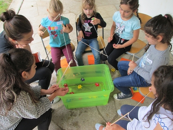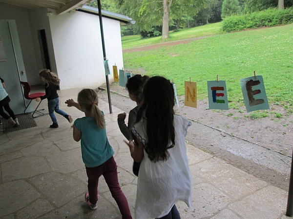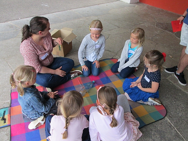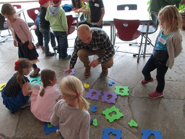 Zahlen und Buchtstaben durften die 6-Jährigen an der Station von Frau Gruler per Zufallsprinzip erraten. Easy!