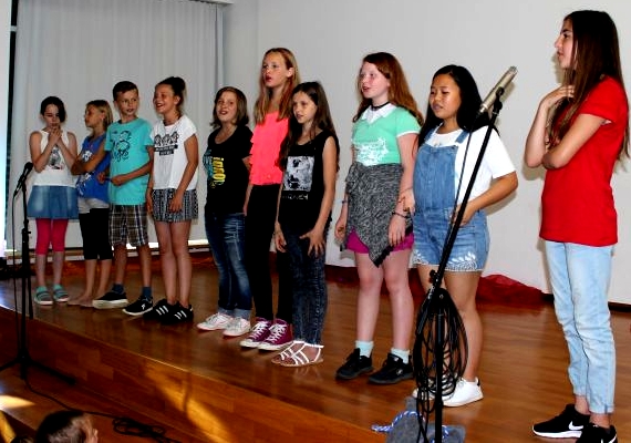 Immer zum Schuljahresende zeigen Schülerinnen und Schüler ihr Können auf musikalischem Gebiet. Dabei treten sie alleine oder in Gruppen vor das Publikum. Die fünften Klassen gaben einen englischen Rap und Piratenlieder aus dem kürzlich aufgeführten Musical zum Besten. Anschließend gehörte die Bühne den Solisten. Mit Vorträgen an Klavier (Annika Österle), Klarinette (Helene Lacher), Schlagzeug (Severin Staudinger), und Geige (Zina Kleile)sowie Gesang (Marina Rottler) erfreuten sie das große Publikum.