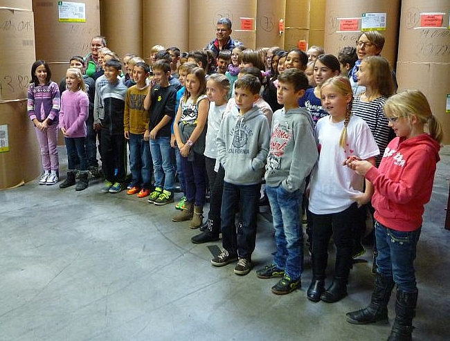 Da der Schwarzwälder Bote (wie alle anderen Tageszeitungen) nachts gedruckt wird, so dass auch wirklich alle Neuigkeiten enthalten sind, erfuhren die Viertklässler auch, was tagsüber im Druckzentrum passiert: Die Maschinen stehen nicht still, sondern drucken Broschüren und Werbung aller Art sowie dienstags die Wochenzeitung WOM.