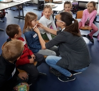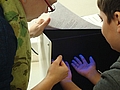 Warum sind saubere Hände wichtig? Diese Leitfrage stand für die vier Klassen an diesem Tag eine Stunde lang im Mittelpunkt. Sie untersuchten, was passiert, wenn die Hände nach dem Waschen nicht gut abgetrocknet werden, beschäftigten sich mit Mikroben und rechneten hoch, wie schnell sich Bakterien vermehren können. Außerdem durften die Kinder mit einem speziellen UV-Gerät testen, wie gut sie ihre Hände bereits waschen.