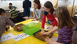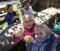 Zum Abschluss des Projekts wurde das Mehl noch zu einem Brotteig verarbeitet: Die Schüler formten ihre eigenen »Dünnele«, welche im Holzofen gebacken wurden und anschließend ofenfrisch gegessen werden durften.