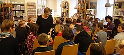 44 Fünftklässler und ihre Lehrerinnen der Konrad-Witz-Schule lauschten gespannt der Autorin Doris Mendlewitsch bei ihrer Lesung in der Stadtbücherei Rottweil.