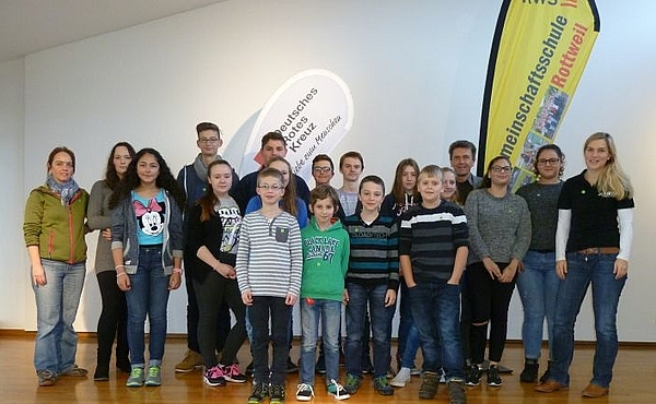 Am Samstag den 21.11.15 fand an der KWS der Schulsanitätsdiensttag statt. Insgesamt 8 verschiedene Schulen (AMG Rottweil, Gymnasium Sulz, Hähnle-Realschule Sulz, Werkrealschule Sulz, Verbundschule Oberndorf, Eschachschule Dunningen, Gymnasium Schramberg und die Konrad-Witz-Schule Rottweil) nahmen mit ihren Schulsanitätern und ihren Betreuern daran teil. An verschiedenen Stationen konnte das vorhandene Wissen aufgefrischt werden. Durch haupt- und ehrenamtliche Mitarbeiter des gesamten Kreisverbands Rottweil wurden Fallbeispiele von Notfällen gekonnt in Szene gesetzt. Wie versorgt man zum Beispiel eine Verstauchung am Sprunggelenk, was mache ich bei einer Hyperventilation oder einem Krampfanfall und wie trage ich einen Verletzten in einer Trage. Diese und weitere Themen wurden an den Stationen bearbeitet, die von kompetenten Mitarbeitern des KV Rottweil betreut wurden.